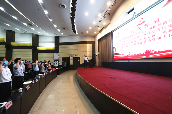 在市纪委常务副书记、市监委副主任杨新锋同志领誓下,全体与会党员紧握右拳,庄严宣誓,重温入党誓词,追忆入党初心。
