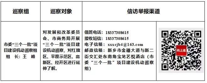 要全面贯彻巡视工作方针,始终把“两个维护”作为根本任务,坚持问题导向、目标导向、结果导向,紧盯职能责任,围绕“三个一批”项目建设决策部署落实情况、项目推进情况、项目资金管理使用情况、群众身边不正之风和腐败问题,精准发现问题、客观分析问题、如实反映问题、有效推动解决问题。 本轮巡察时间20天左右,为便于干部群众反映情况,市委巡察组设置了专门值班电话、接收短信手机、电子邮箱、邮政信箱、征求意见箱,并开通了“码上巡”,受理信访时间为工作日的工作时间,截止时间为2024年9月6日。巡察期间,市委巡察组将严格落实中央八项规定及其实施细则精神和市委相关规定,主动接受被巡察单位和社会各界的监督,市纪委监委监督举报电话12388,市委组织部监督举报电话12380。