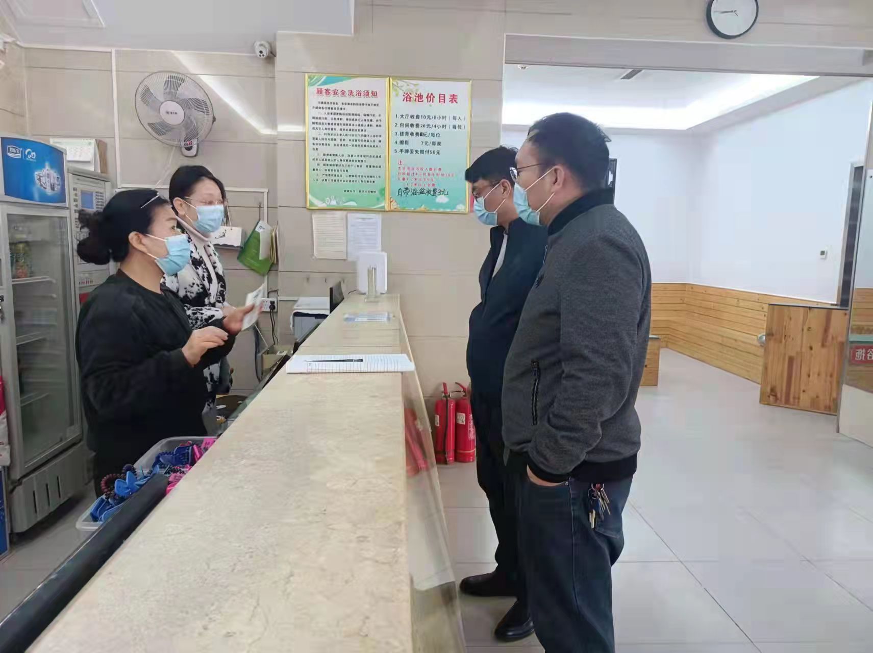 4月1日,第一监督检查组到南桥办事处辖区浴池询问工作人员具体疫情防控措施落实情况。