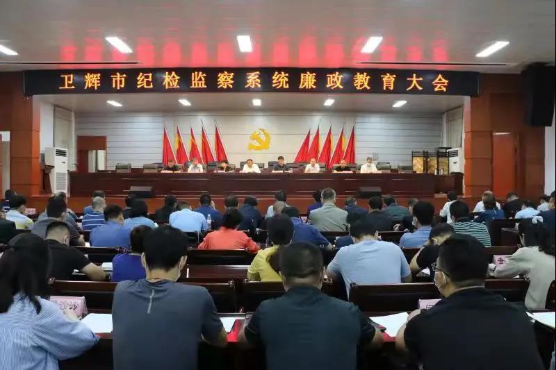 与会人员共同观看廉政警示教育片。市纪委副书记、监委副主任张利香传达新乡市《关于2021年中秋国庆期间加强作风建设严刹“吃喝风”“送礼风”的通知》。市监委委员徐跃武通报典型案例。各部室负责人、派驻组组长现场签订并向市纪委书记葛林递交《卫辉市党员干部杜绝违规吃喝送礼承诺书》。