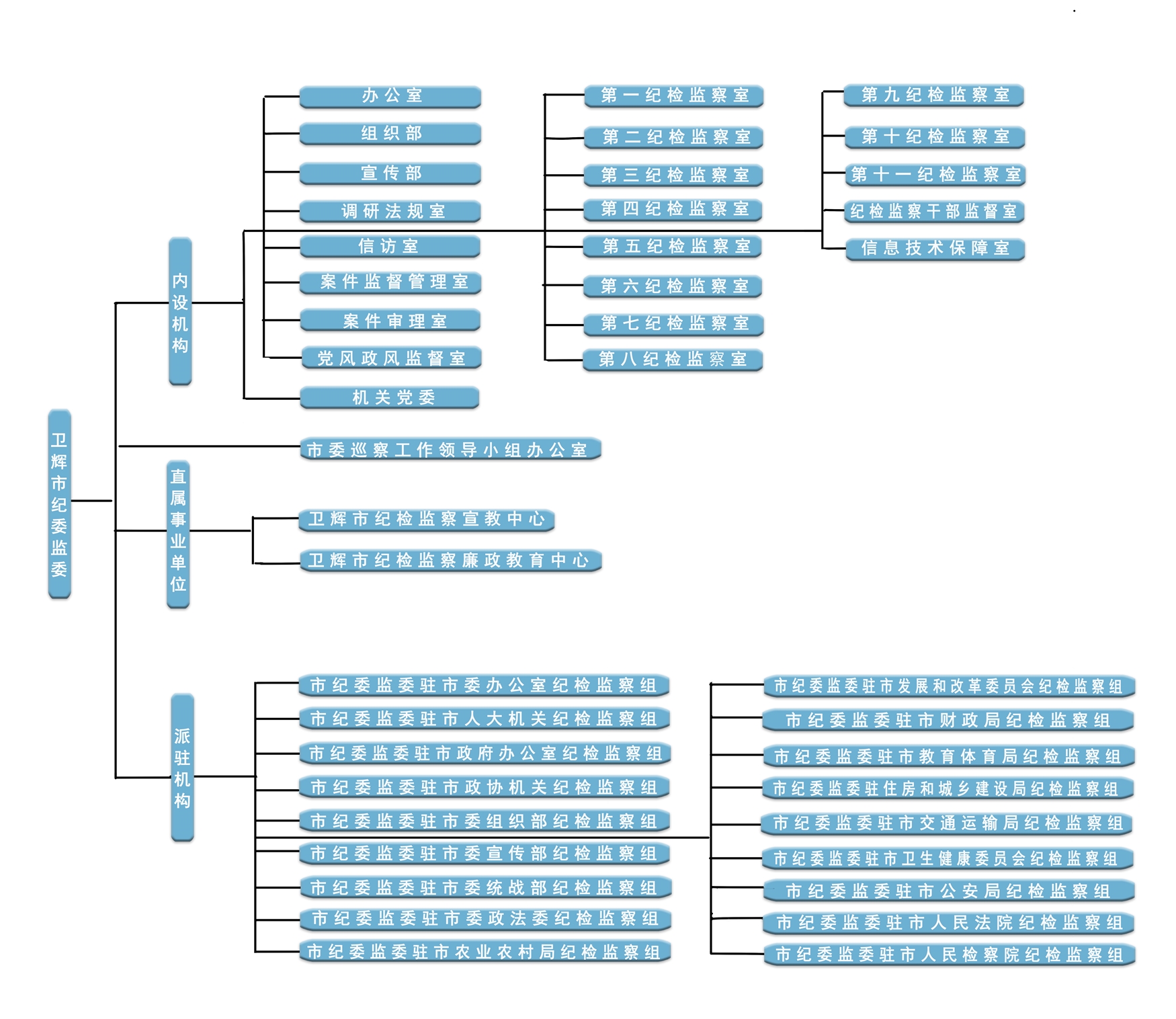 所属2个事业单位:卫辉市纪检监察宣教中心、卫辉市纪检监察廉政教育中心。