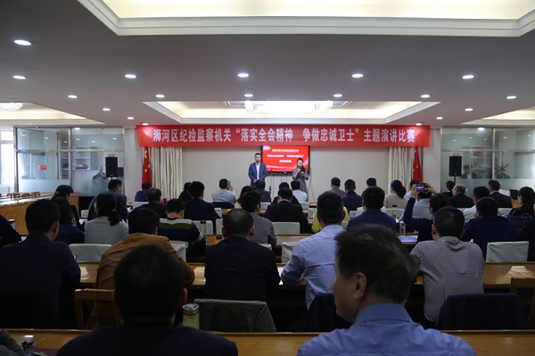 3月29日,浉河区纪委监察委举办“落实全会精神,争做忠诚卫士”主题演讲比赛。