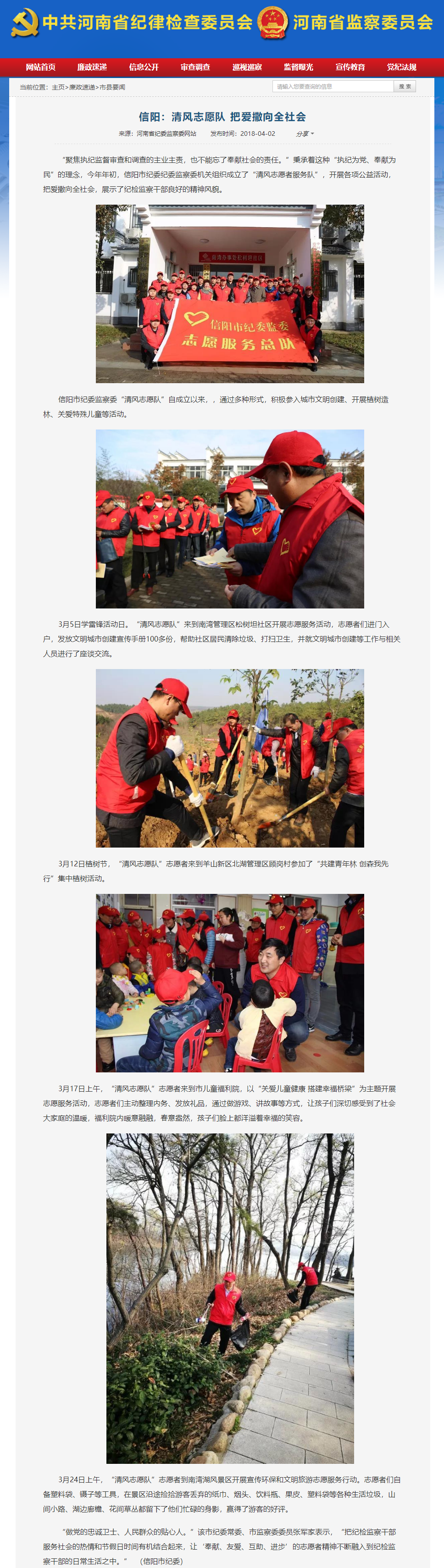 【省纪委网站要闻】信阳:清风志愿队 把爱撒向全社会