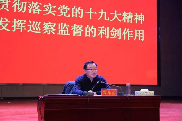 郭佑安同志指出,党章和党的十九大报告中均对市县巡察制度作出明确规定,充分体现了党中央对巡察工作的高度重视和推动全面从严治党向基层延伸的坚定决心。党的十八大以来,以习近平同志为核心的党中央坚持党要管党、全面从严治党,深入推进巡视工作理论创新、实践创新、制度创新,形成了科学系统的习近平巡视工作思想。市县巡察要以习近平巡视工作思想为指导,全面遵循党章要求,准确把握形势任务,聚焦全面从严治党,坚定不移深化政治巡察。
