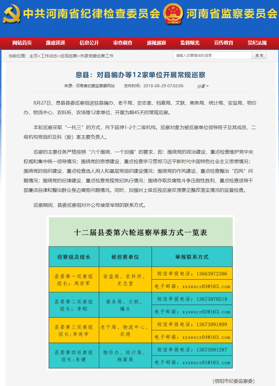 【省纪委网站信息】息县:对县编办等12家单位开展常规巡察