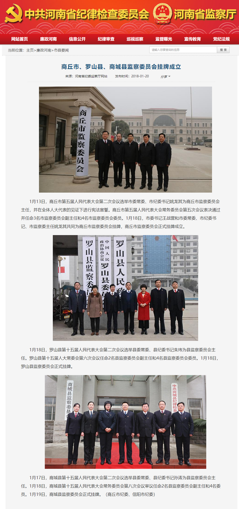 【省纪委网站要闻】商丘市、罗山县、商城县监察委员会挂牌成立