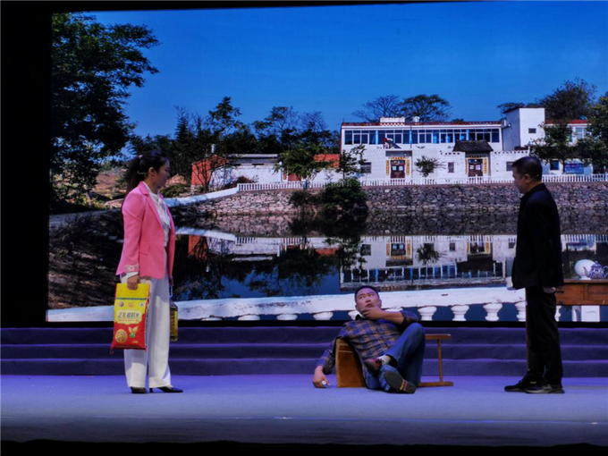 9月14日,聚焦脱贫攻坚战编排的花鼓戏《油茶花儿开》在光山县文化中心上演,展现了帮扶干部千方百计扶贫扶志,不断激励引导,商讨脱贫举措,帮助群众脱贫的趣事。(光山县纪委监委 蔡崇春 摄)