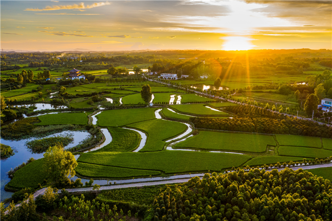 在静谧的豫南水乡,稻在水中长,虾在稻边游。稻虾共作一田双收成为光山人民致富的新门路。(光山县纪委监委供 徐大迟 摄)