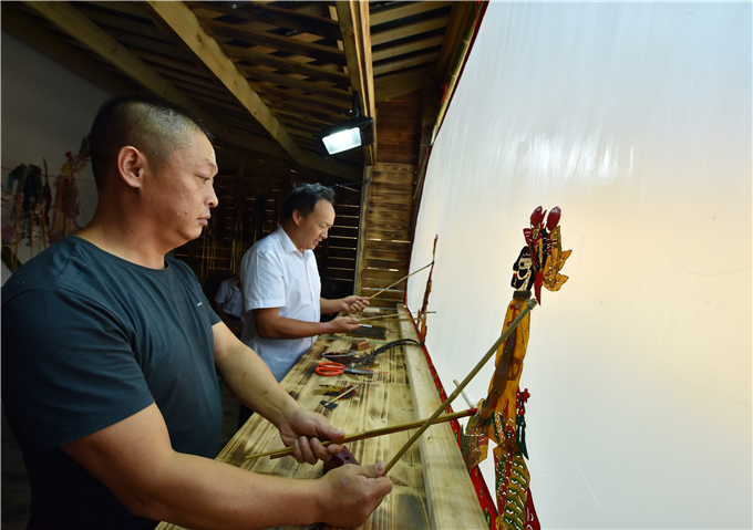 以文化建设凝聚扶贫合力,用皮影戏敲响脱贫边鼓。总书记走过的“文化驿站”小院,皮影戏受到游客的热捧。(新县纪委监委 焦汉平 摄)