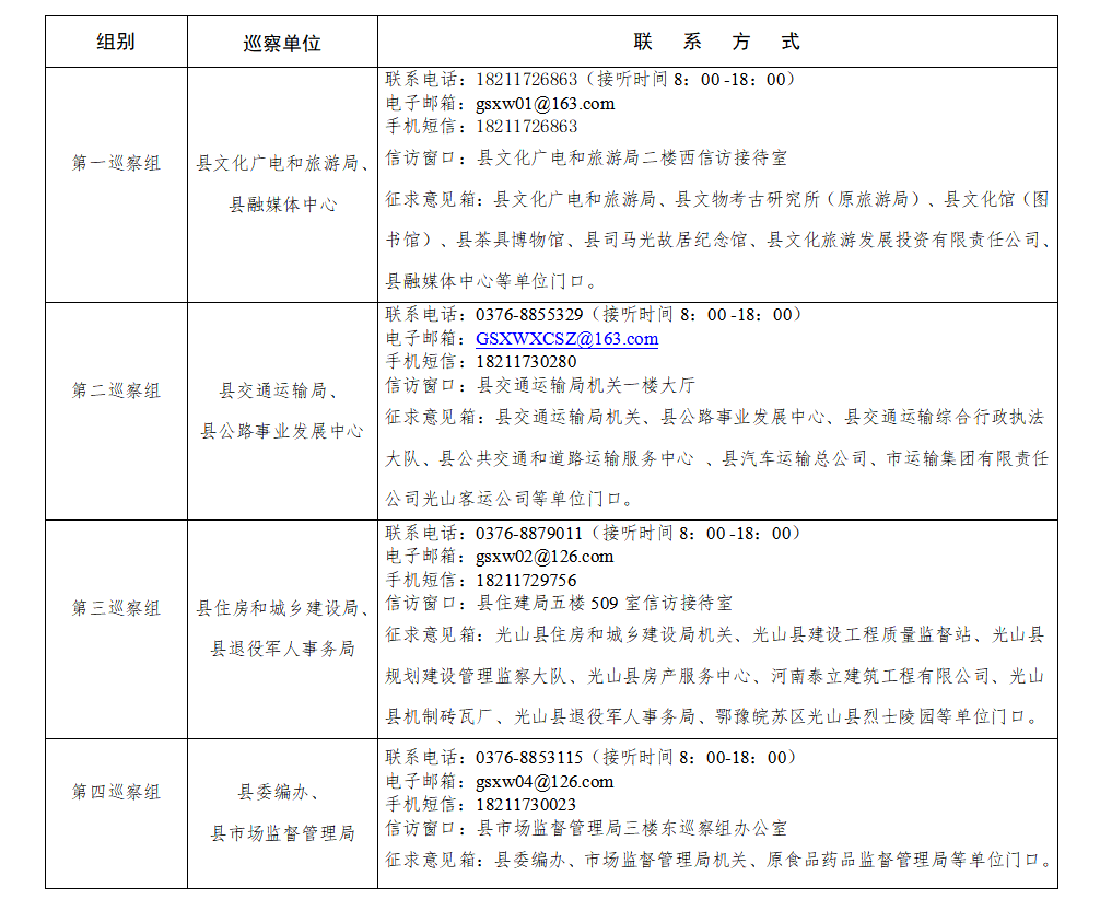 十三届光山县委第二轮巡察工作巡察组联系方式