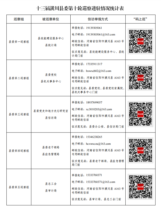 按照潢川县委统一部署,2024年12月10日至11日,5个县委巡察组已完成十三届县委第十轮巡察进驻。本轮巡察分别对县委老干部局等10个单位党组织开展常规巡察,时间40天左右。