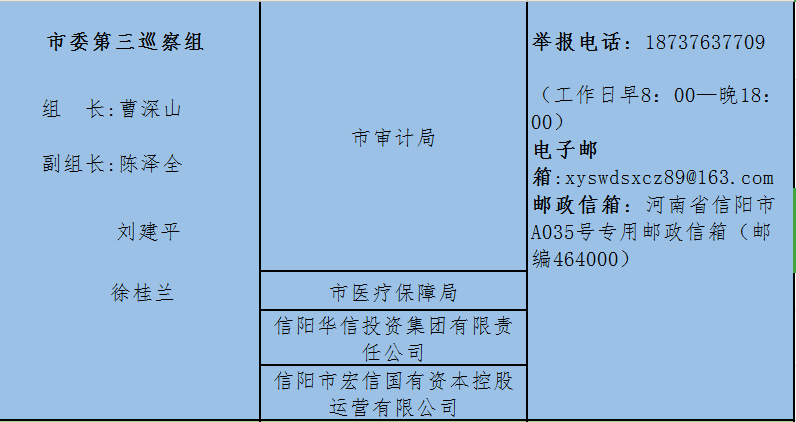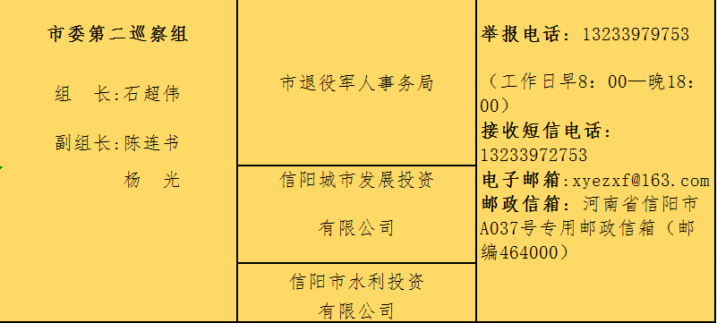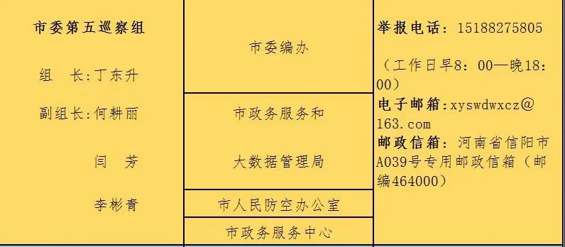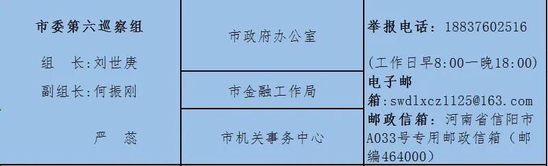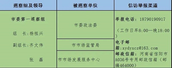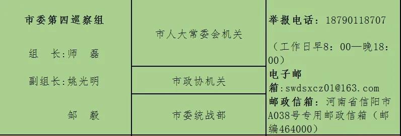 巡察期间,市委巡察组主动接受被巡察单位和社会各界的监督,市纪委监督举报电话:0376—12388,市委组织部监督电话:0376—12380。