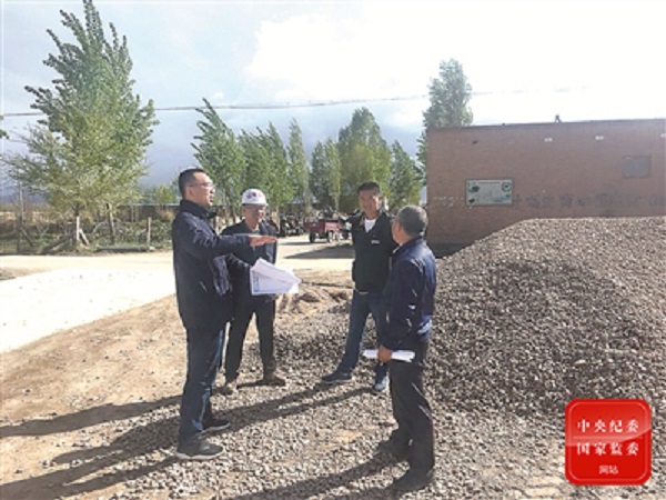 甘肃各级纪检监察机关聚焦农村危房改造领域,把整治形式主义、官僚主义作为监督检查的重点,为决战决胜脱贫攻坚提供坚强作风保障。图为金昌市纪委监委派出监督检查组到城关镇沙沟岔村拆旧建新现场了解有关情况。孙永红 摄