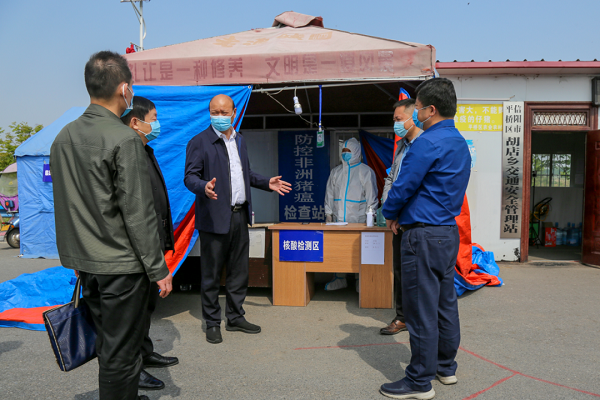4月23日,市纪委副书记、市监委副主任殷田夫一行到平桥区督导检查疫情防控工作。