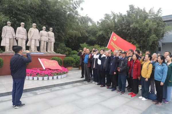 参观结束后,老干部党支部全体党员在中共中央中原局五位委员花岗岩群雕前重温入党誓词,重忆入党经历、重温入党初心。老干部们纷纷表示,在建党100周年之际开展这样一次党史主题党日活动,回顾党的奋斗历史,意义非凡;今后将更加自觉地听党话、跟党走、感党恩,发扬退休不褪色的革命精神,不忘初心跟党走,赋能助力再出发,努力为信阳纪检监察事业发展做出新贡献。文/委老干室