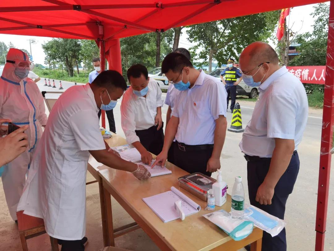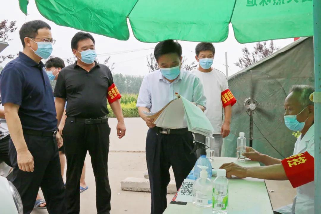 8月11日,商水县纪委副书记、监委副主任王建新一行到舒庄乡扶苏村疫情防控卡点督查外来车辆及人员的信息排查登记等情况。(商水县纪委监委郭海丽摄)