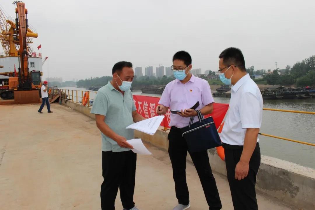 8月12日,沈丘县纪委副书记张培涛到石槽集乡沙颍河众恒港,对港口停泊船只登记薄、人员上岸防疫管理台账、卸装物资消杀记录等情况进行监督检查,督促港口办党组严格落实疫情防控主体责任。(沈丘县纪委监委李玉东摄)