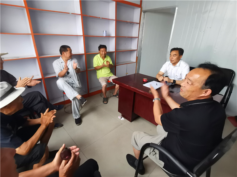 周口市淮阳区综合治理第二工作组组长靳遵杰接待陈小庄来访群众,针对群众反映的问题一一解答,用事实说话,群众的笑脸和掌声充分体现了对工作组的信任和满意。(冯玉婷 摄)