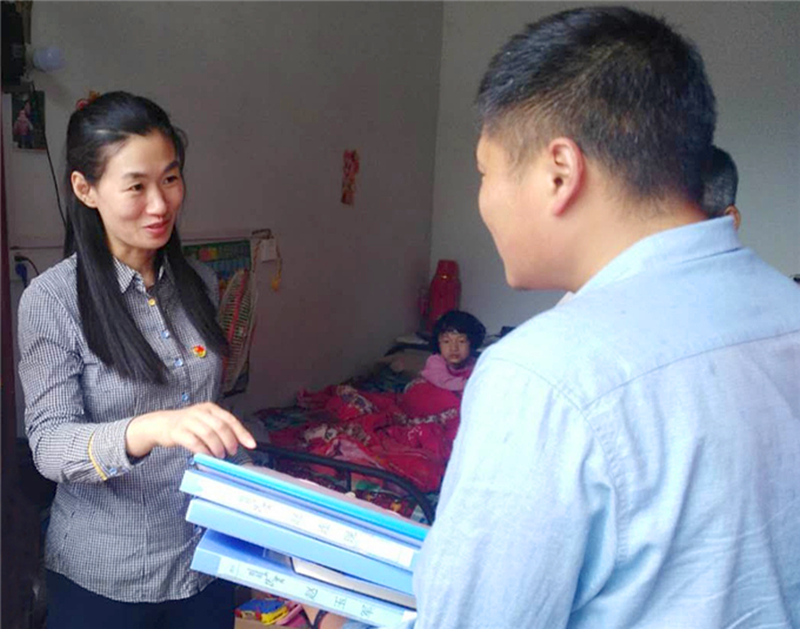 西华县纪委监委纪检监察干部来到贫困户家中,查询惠农补贴发放情况,对贫困户信息和帮扶措施再核实,通过走访督查,压实帮扶工作责任,力促扶贫领域干部作风转变。(马东雷 摄)