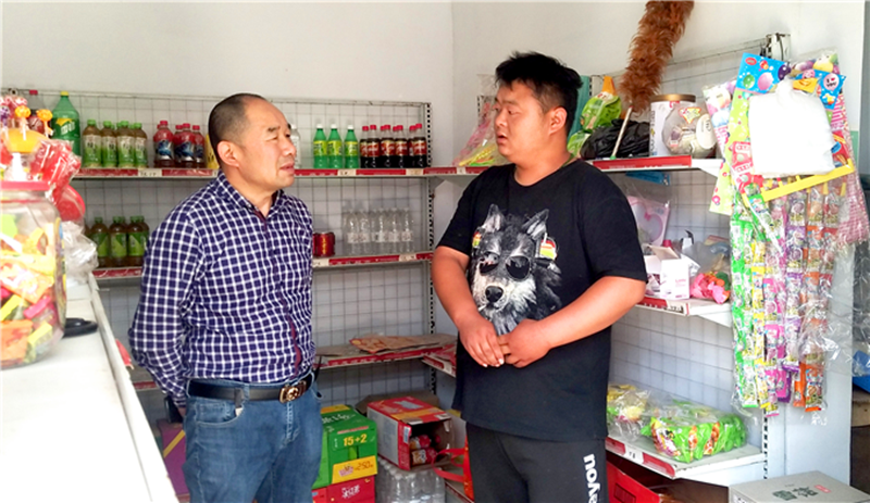 周口市纪委监委驻市自然资源和规划局纪检监察组到鹿邑县玄武镇马庄行政村进行扶贫督查,到贫困户马江彦家了解帮扶“家庭超市”的经营情况。(王方方 摄)