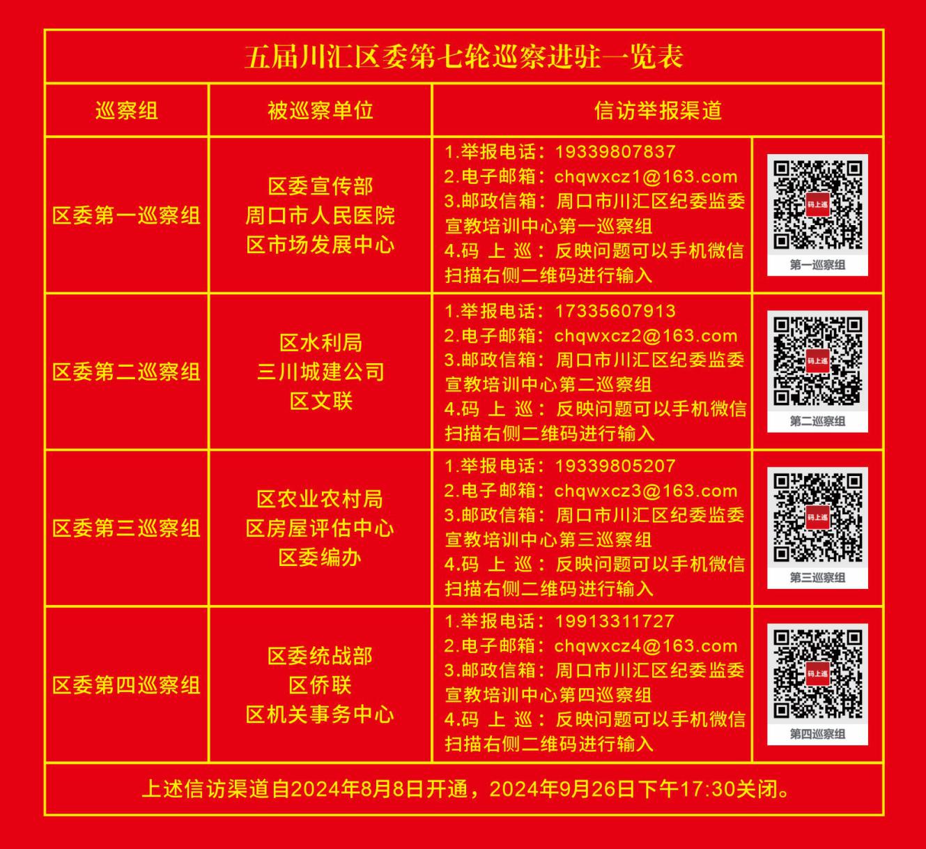 五届周口市川汇区委第七轮巡察完成进驻 联系方式公布