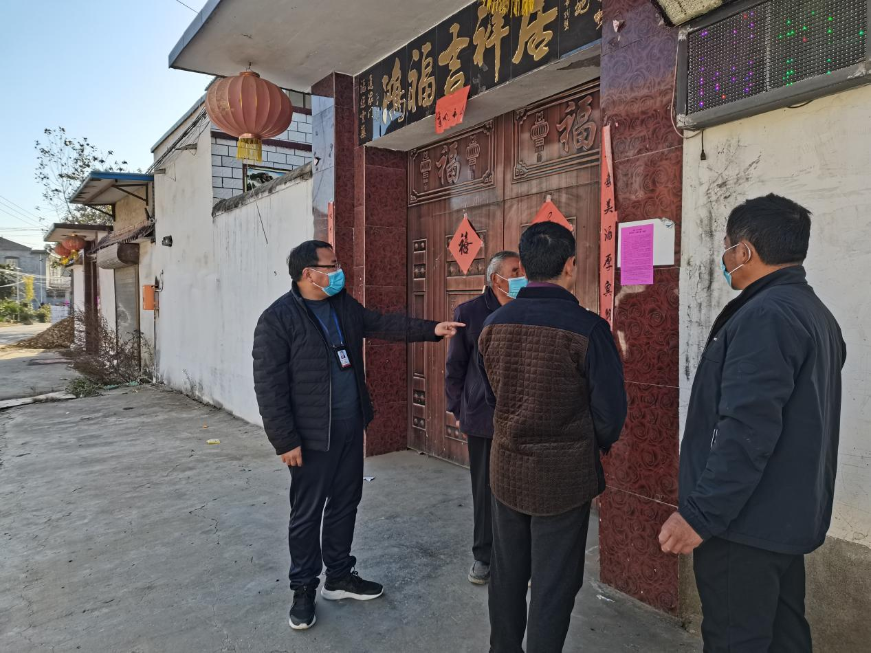 11月10日上午,朱集乡纪委书记贾宏声到该乡大杨寨行政村督查疫情防控宣传工作。对各村有关疫情防控的宣传条幅悬挂、公告张贴、《一封信》发放和村室广播宣传等进行逐一查看。图为贾宏声给群众讲解《朱集乡人民政府致广大人民群众的一封信》上的疫情防控倡议。(拍摄:张照昀)