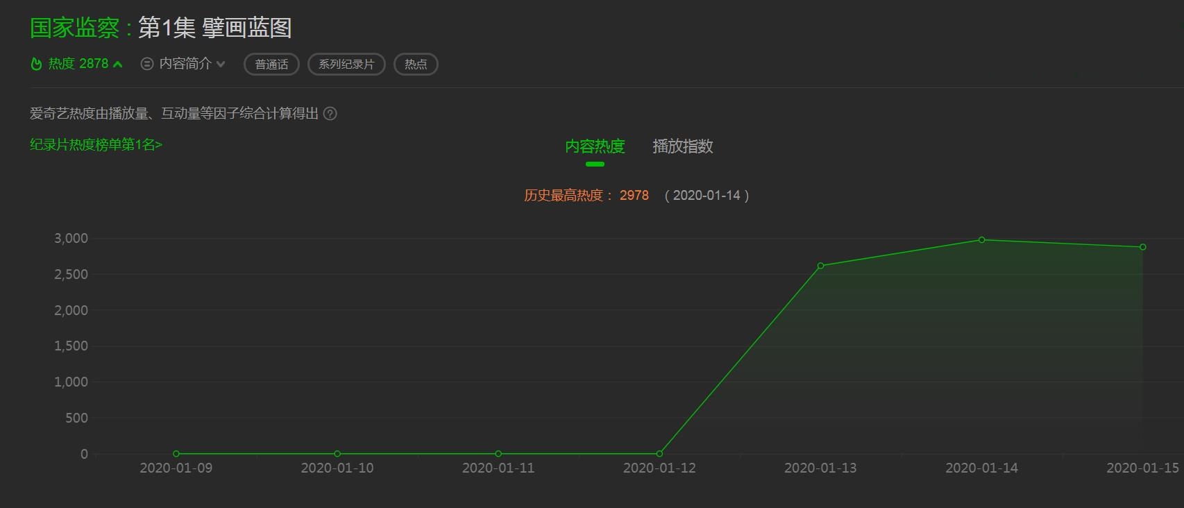 《国家监察》居爱奇艺纪录片热度榜单第一名