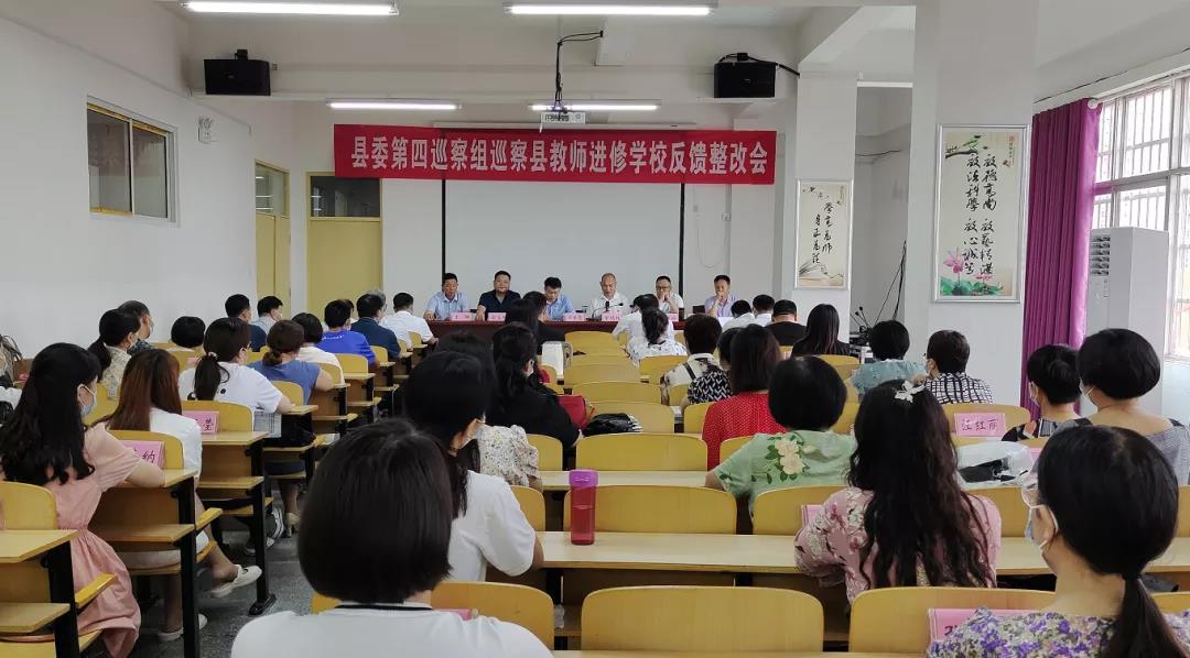7月7日上午,县委第四巡察组巡察县教师进修学校情况反馈会在进修学校五楼会议室召开。县委第四巡察组组长訾现红同志就巡察进修学校情况进行了反馈。县委巡察工作领导小组成员、县委组织部常务副部长付建党同志对整改工作进行安排部署。
