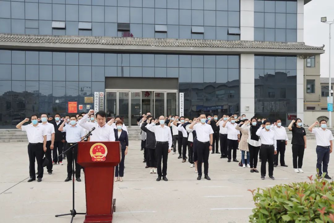 9月27日,县纪委监委40余名党员干部齐聚南湖街道参加升国旗仪式。县纪委常委聂文杰带领纪检监察干部进行宪法宣誓;县纪委常委、县监委委员范志丽代表县纪委监委向南湖街道捐赠伍万元秸秆禁烧工作经费。