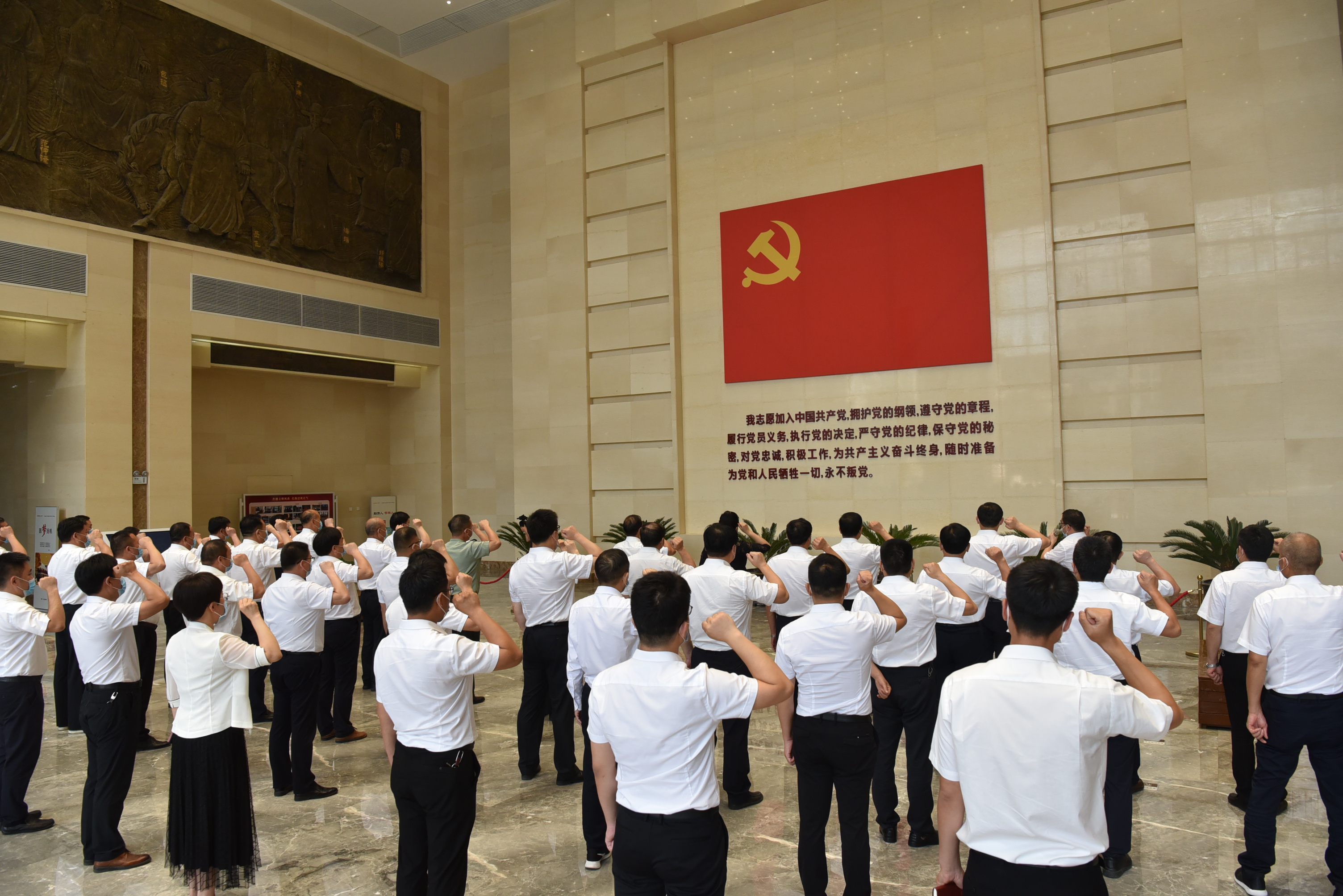 “我志愿加入中国共产党,拥护党的纲领,遵守党的章程,履行党员义务……”近日,新蔡县组织县四大班子领导干部和部分重点部门负责同志到河南省廉政文化教育中心接受廉政教育,现场重温入党誓词。