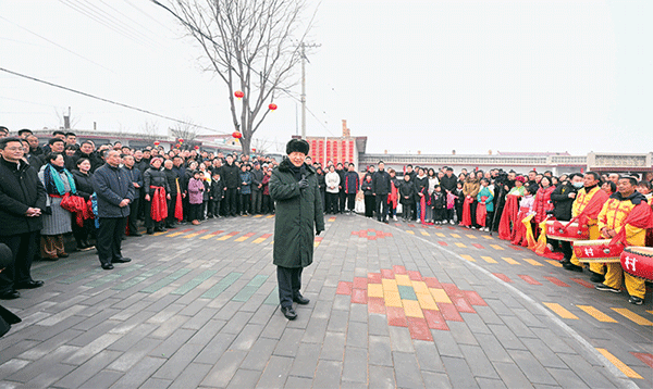 2022年1月26日至27日,中共中央总书记、国家主席、中央军委主席习近平来到山西,看望慰问基层干部群众。这是26日下午,习近平在临汾市汾西县僧念镇段村文化广场,给乡亲们拜年,向全国各族人民、向港澳台同胞和海外侨胞致以美好的新春祝福。 新华社记者 李学仁/摄
