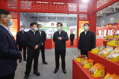 4月18日,省委书记楼阳生到驻马店国际会展中心调研特色农产品产业发展情况。董亮 蔡迅翔 摄